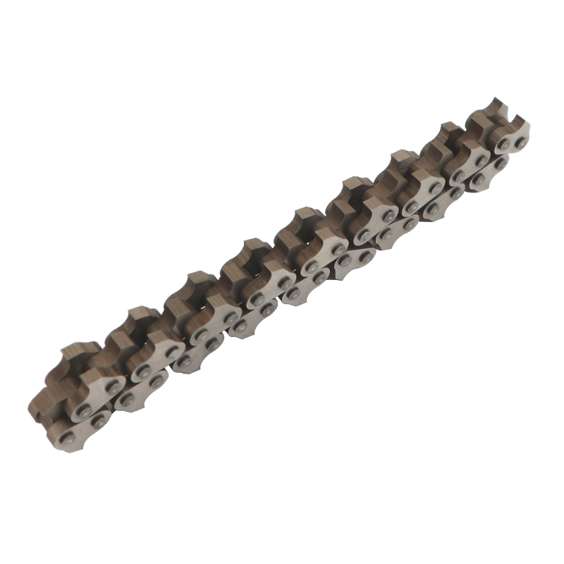 窄边小齿:链条无内接轴件,由54个小型链齿紧密配合铆接而成,长度为18节,适用于凹槽,三角区域废料的清除;