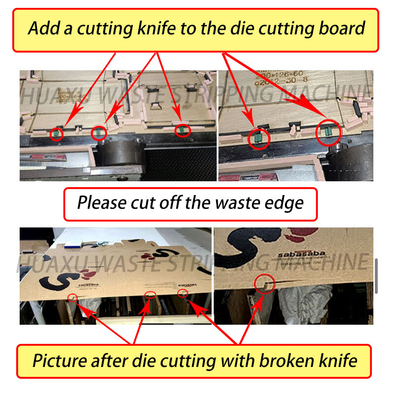 The use of the waste stripper must be equipped with a mold cutting knife. Refer to this picture for the placement of the cutting edge: